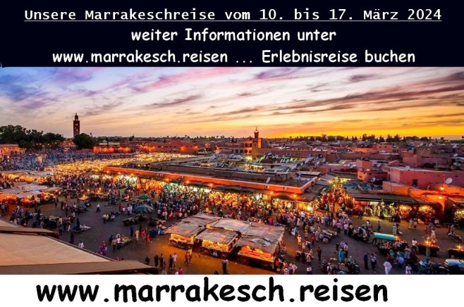 Anmeldungen bitte per mail an marrakeschtravel@gmail.com